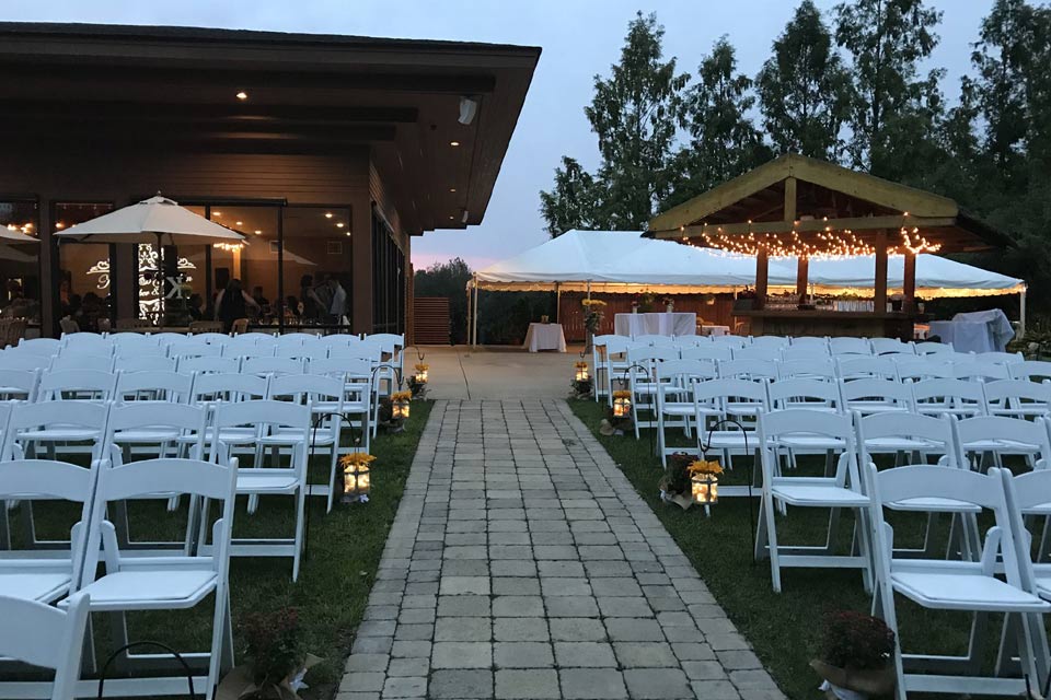 The banquet space offers spectacular golf course views that you won’t find in stuffy hotel banquet rooms or banquet halls.  When you book a private event at our Ann Arbor venue, the outdoor patio and large tented patio are included in the banquet room rental.